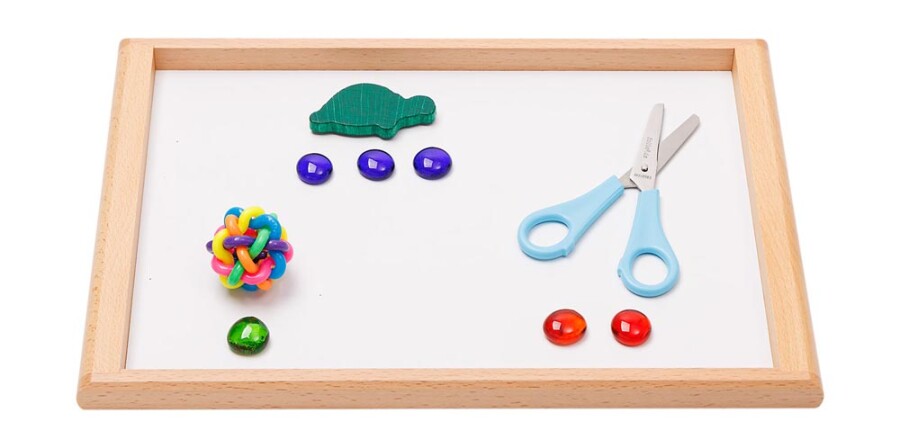 Een ruim dienblad met één groot vak houdt opdrachten en materialen bij elkaar. Ideaal als onderlegger voor A4. De opstaande rand begrenst het werk. Handig voor bouwen, tekenen en sorteren.
