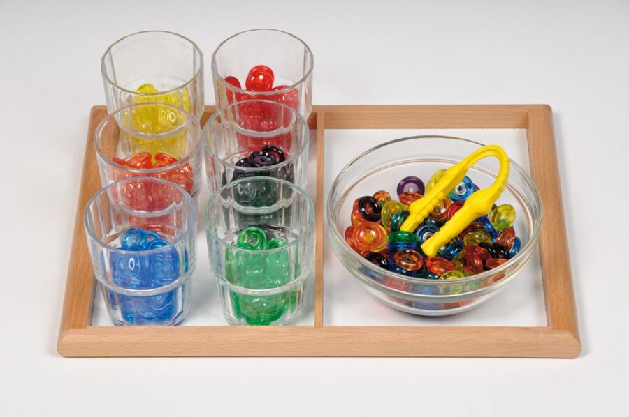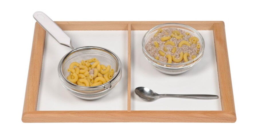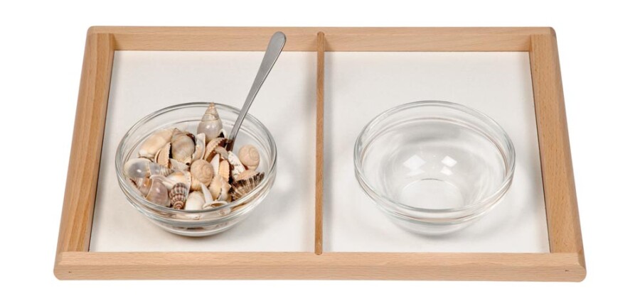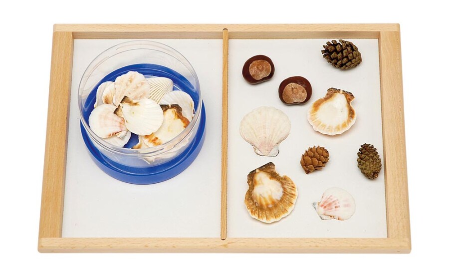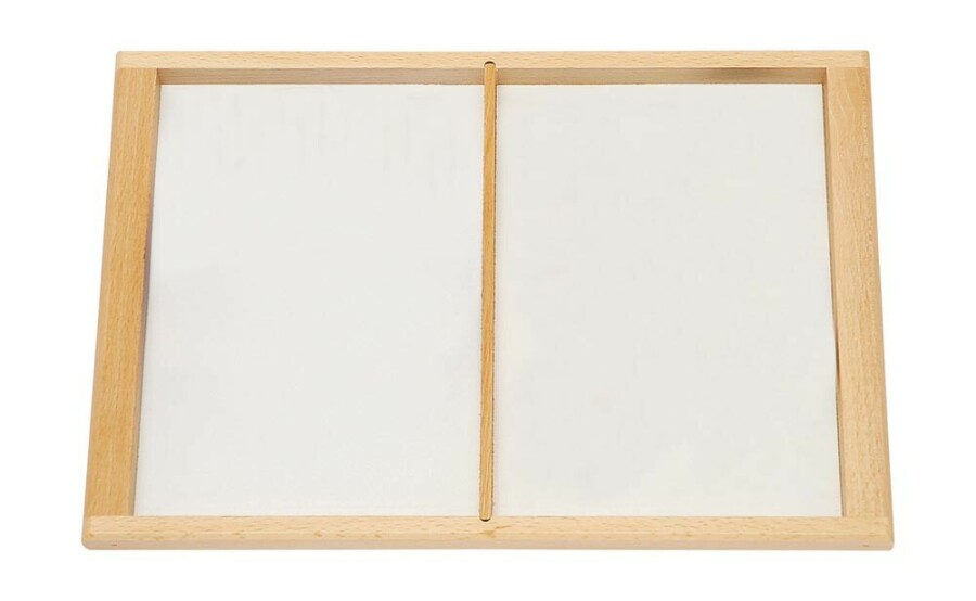 Dit dienblad met twee vakken ordent werk en materialen overzichtelijk. Past precies bij A5-opdrachten. Gemakkelijk te dragen door de opstaande rand. Ideaal voor sorteren, bouwen en kleine knutselprojecten.