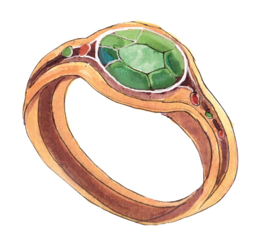 - Sprookjesdobbelsteen 3,5 cm met 6 gekleurde steentjes