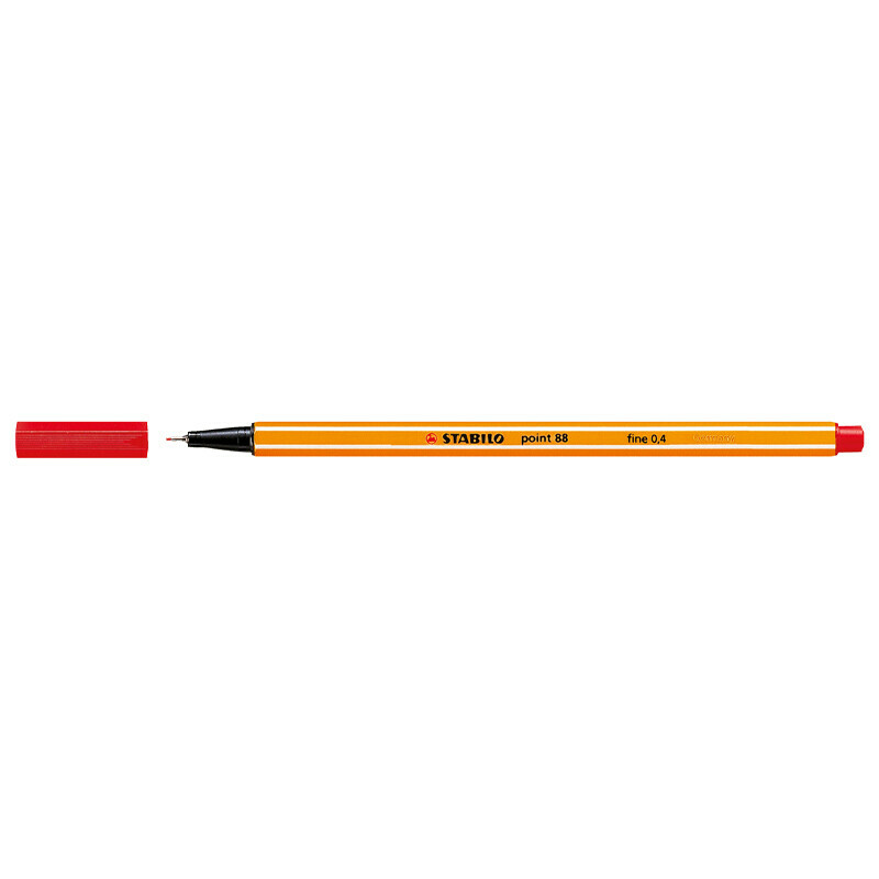 De Stabilo fineliner point 88 in rood is Europa's nummer 1 fineliner, ideaal voor gedetailleerd en precies werken. Met een schrijfbreedte van 0,4 mm en een in metaal gevatte punt, biedt deze fineliner sterkte en duurzaamheid. Perfect voor schrijven, tekenen, kleuren en schetsen, en uitstekend geschikt voor gebruik met linialen en sjablonen.
