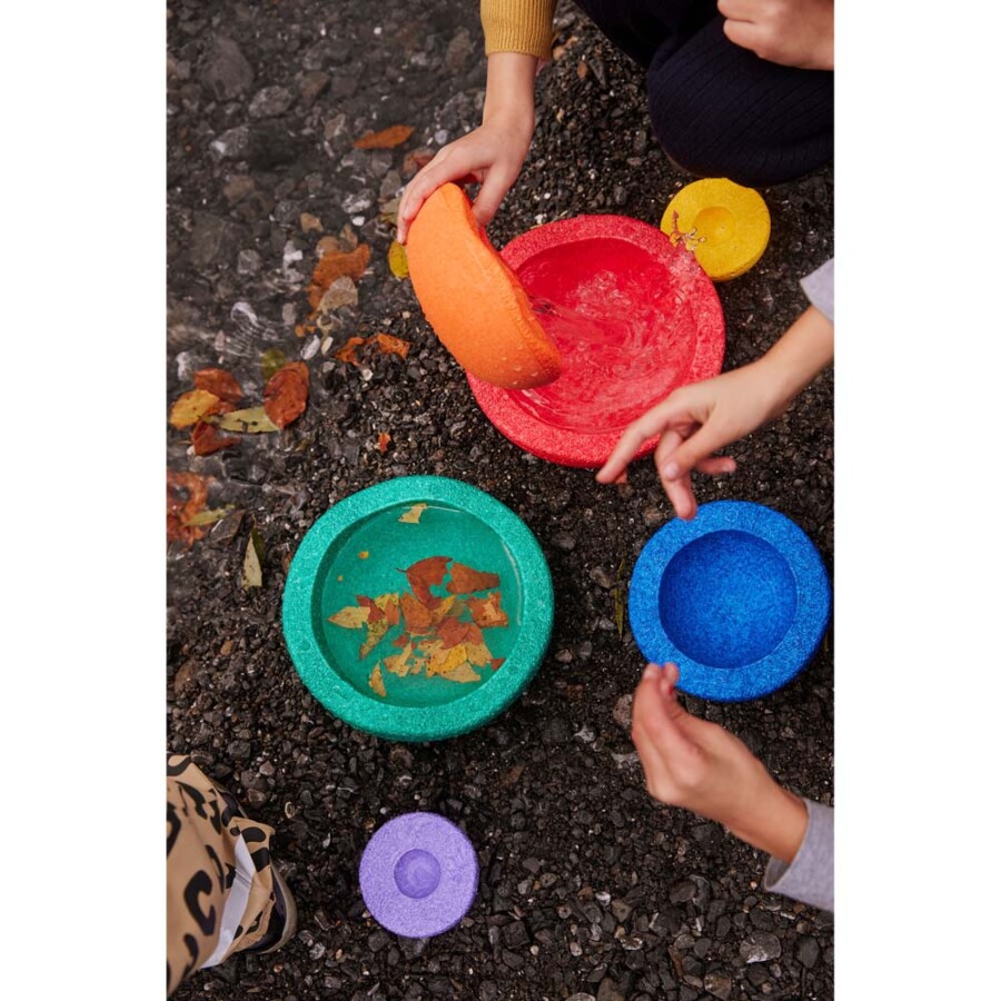 Stapelstein Inside Regenboog set (6 stuks) met stapelbare stenen in 3 maten. Slim ontwerp zorgt voor stevige, veilige combinaties. Perfect voor creatief spel, motorische ontwikkeling en eindeloze bouwmogelijkheden voor kinderen.