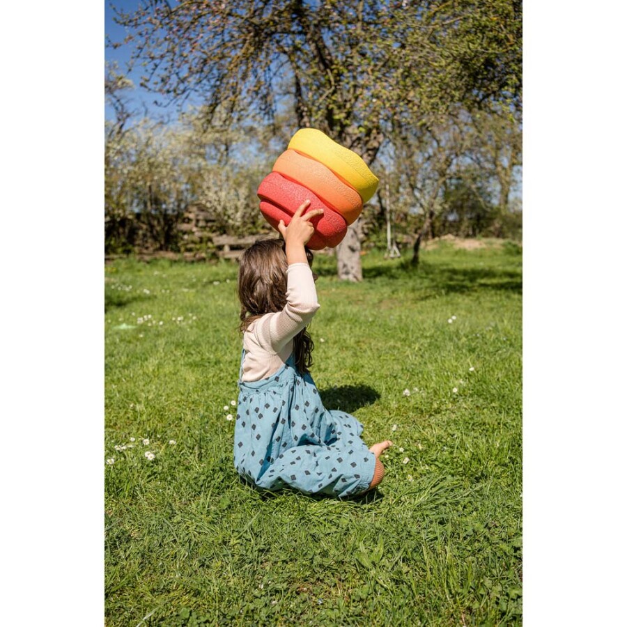 Ontdek de veelzijdigheid van de Stapelstein Original Warm set (3 stuks) en stimuleer spelenderwijs beweging en creativiteit. Deze duurzame balansstenen nodigen uit tot actief spelen: stapelen, balanceren, bouwen of zelfs gebruiken in water. Perfect voor fantasierijke spellen zoals “de vloer is lava” en ideaal voor zowel binnen als buiten.