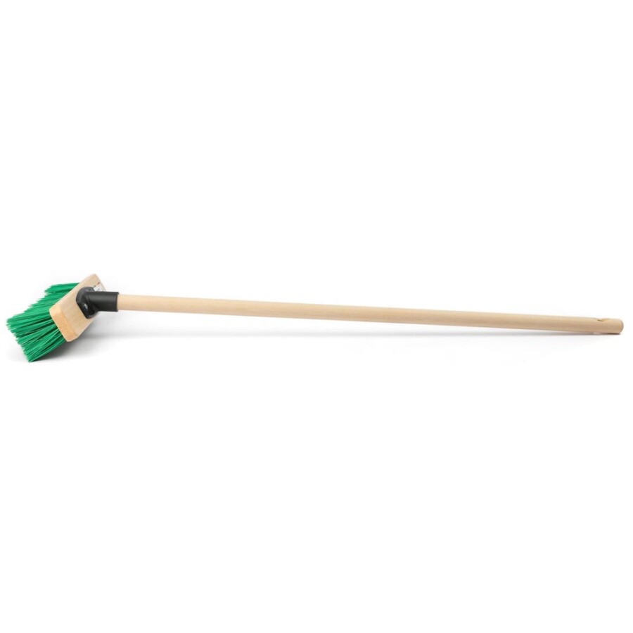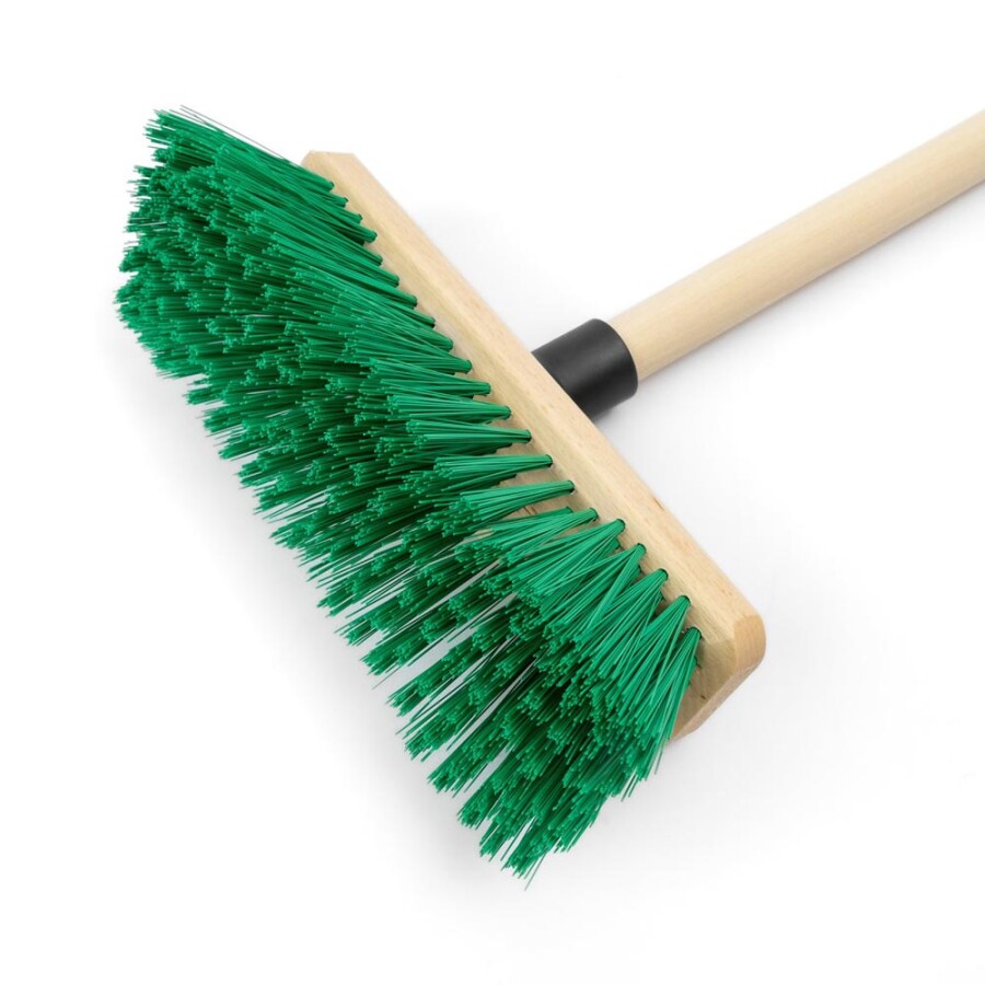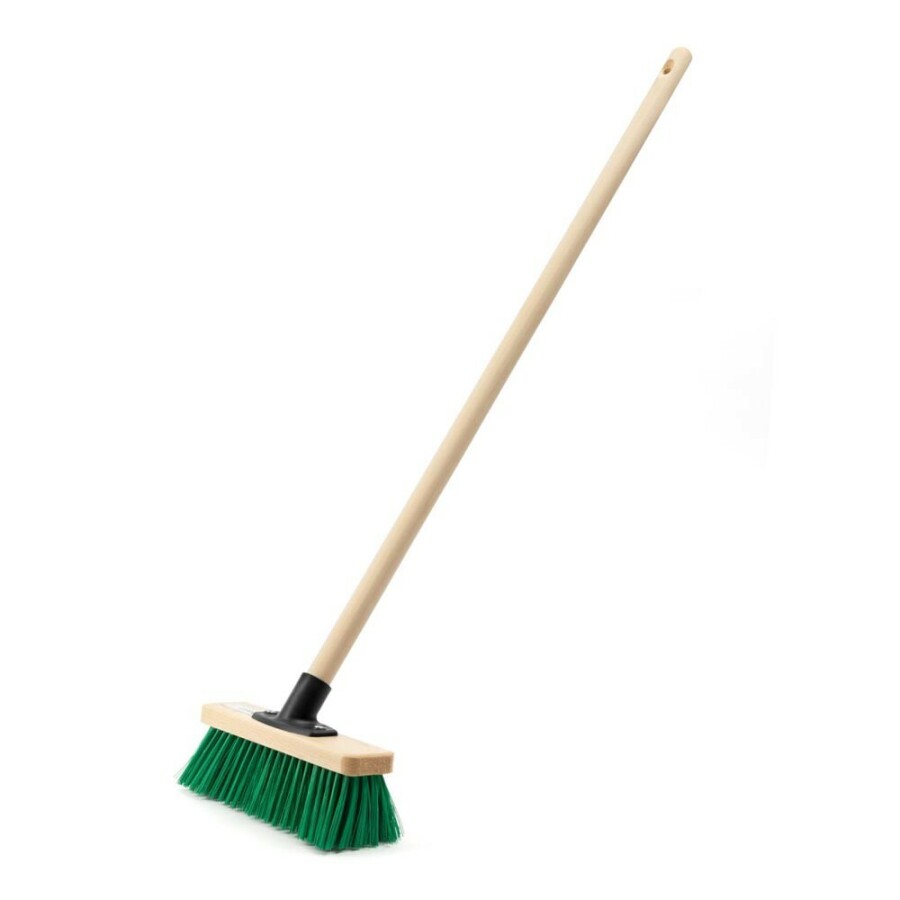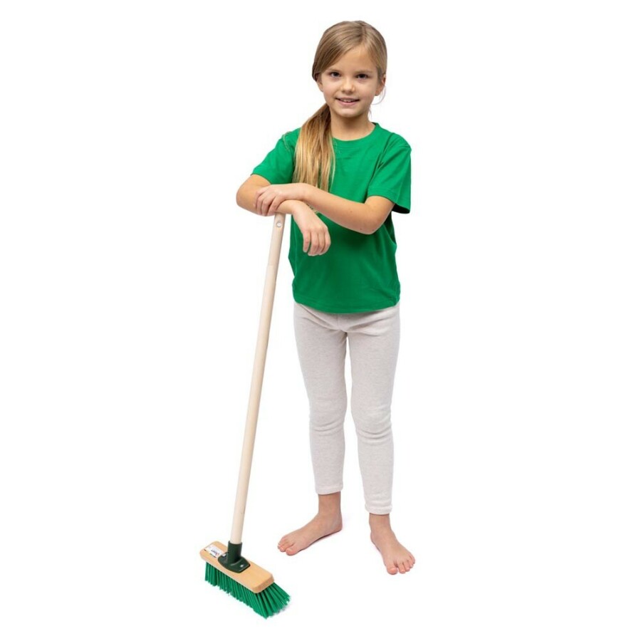 Laat kinderen zelf helpen met opruimen op het plein of in de tuin. Deze stevige kinderbezem veegt zand, bladeren en klein vuil moeiteloos weg. De 80 cm houten steel ligt prettig in kleine handen en geeft goede controle. Slijtvaste kunststof vezels kunnen tegen een stootje en houden hun vorm. Dankzij de weerbestendige materialen is hij ideaal voor buiten en gaat hij lang mee. Klaar met vegen? Hang hem eenvoudig op aan een haak.