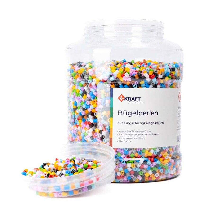 - Inhoud: 25.000 kralen, emmer met draaideksel en handvat