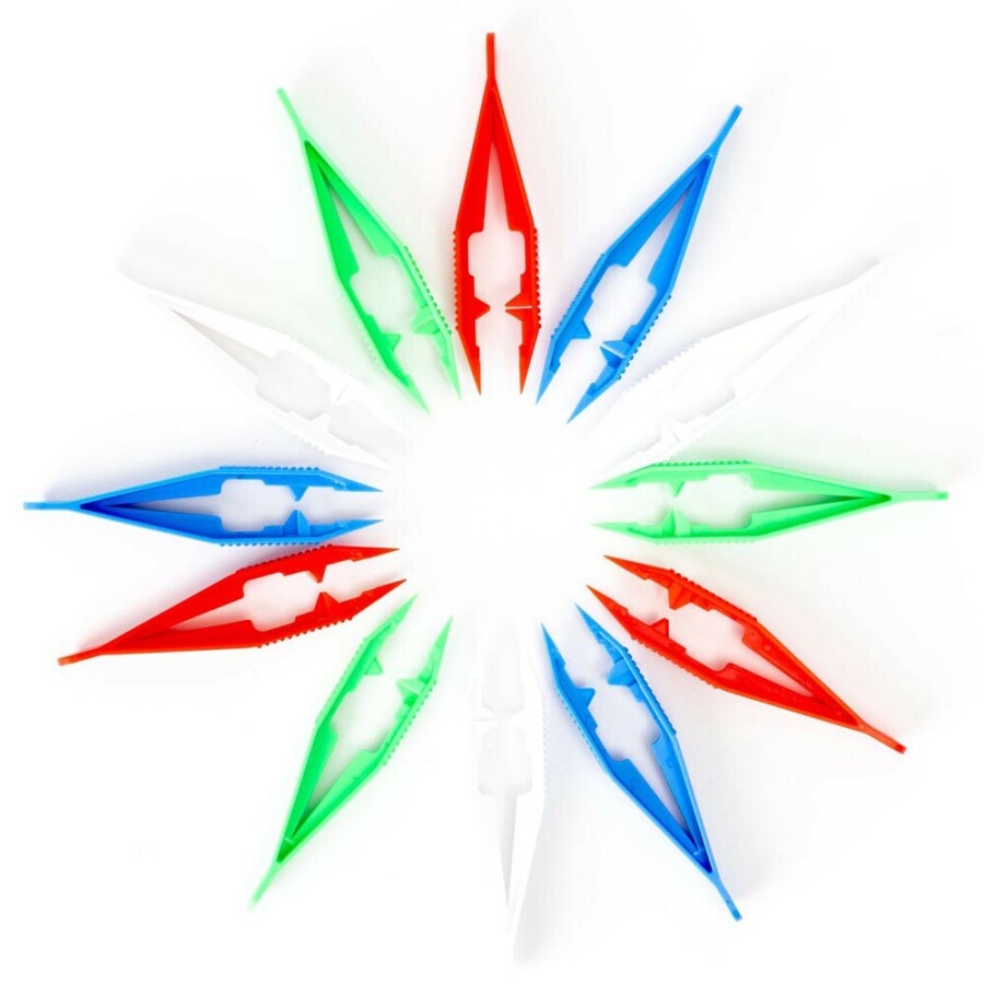 Deze set bevat twaalf kunststof pincetten die goed in kleine en grote handen liggen. De geribbelde grijppunten en smalle punt geven precies genoeg grip en richting. Ideaal bij strijkkralen, sorteerspelletjes en motorische oefeningen. Fijn om de pincetgreep, coördinatie en concentratie spelenderwijs te oefenen.