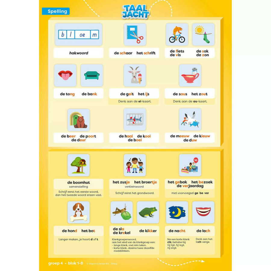 De categoriekaarten van Taaljacht helpen leerlingen uit groep 4 om zich de juiste spelling van woorden eigen te maken. Op de kaarten vinden ze, per categorie, een voorbeeldwoord en een korte uitleg van de spellingregel of -afspraak terug.