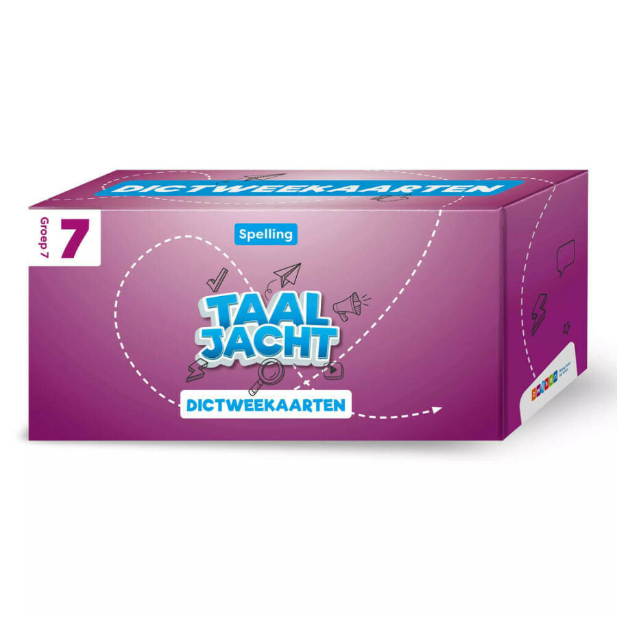 Binnen Taaljacht - Spelling & Grammatica staat er aan het eind van iedere lesweek een dictwee op het programma. Leerlingen uit groep 7 kunnen met de dictweekaartjes een dictee bij elkaar afnemen. De kaartjes bevatten per blok basis- en pluswoorden.