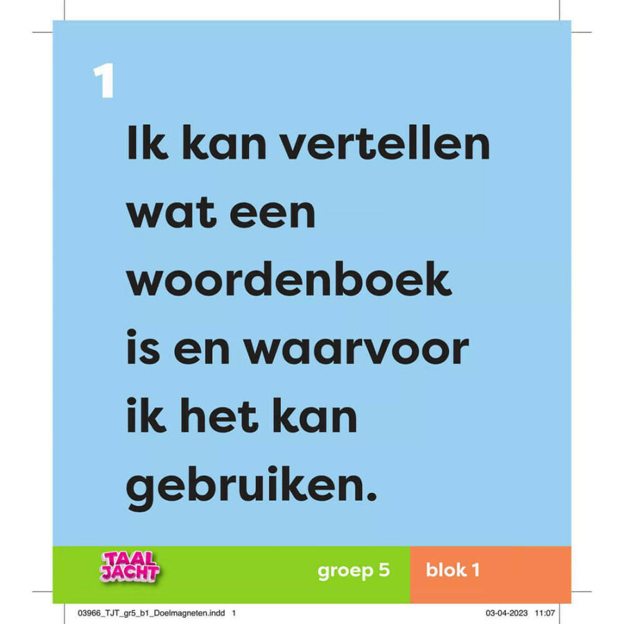 Specificaties van Taaljacht | Taal | Groep 5 | Doelmagneten blok 1-8