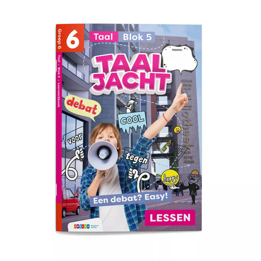 In het domein Taal van de methode Taaljacht werken leerlingen thematisch. Per thema is er een leerboekboek met gevarieerde oefeningen en opdrachten. Het leerwerkboek blok 5 is een omkeerboek.