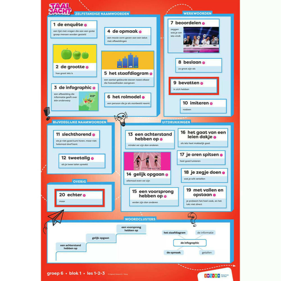 Specificaties van Taaljacht | Taal | Groep 6 | Woordposters blok 1-8