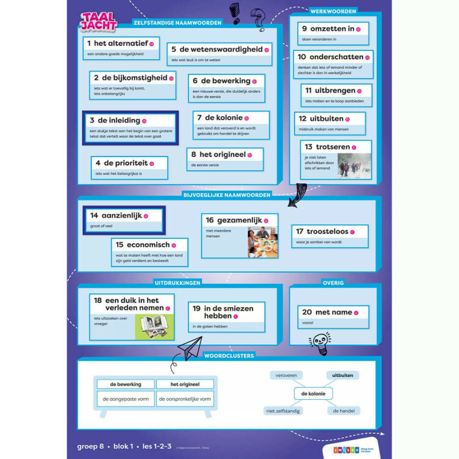 Specificaties van Taaljacht | Taal | Groep 8 | Woordposters blok 1-8