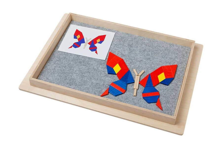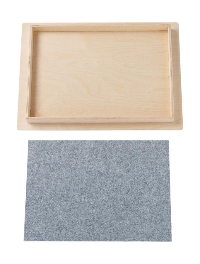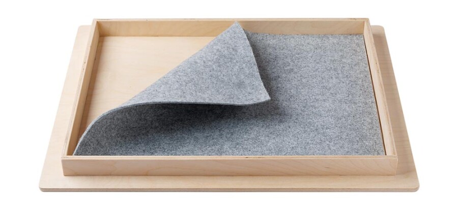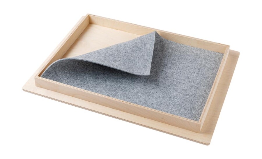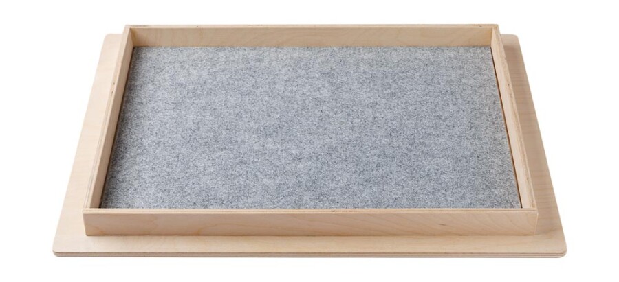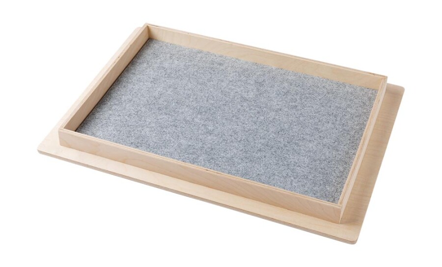 Dit projectblad biedt een duidelijke werkplek voor bouwen, leggen en tekenen. De verhoogde rand houdt materiaal bij elkaar, niets schuift weg. De vilten inleg dempt geluid en geeft structuur aan het werkgebied. Het vilt is uitneembaar en wasbaar op 30 graden, wel zo praktisch. Handig in atelier, bouwhoek of bij individuele opdrachten.