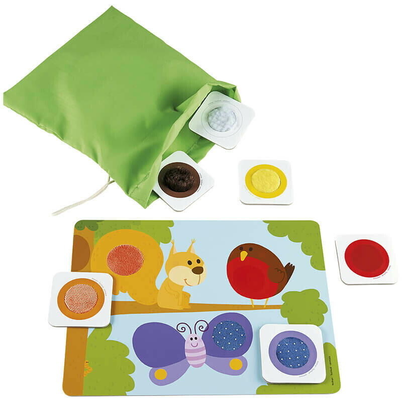 Tactiludi - dieren bevat twee spelletjes die draaien om het herkennen van verschillende materialen door te voelen.