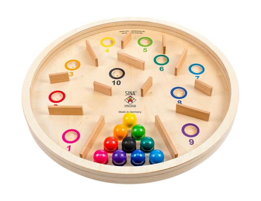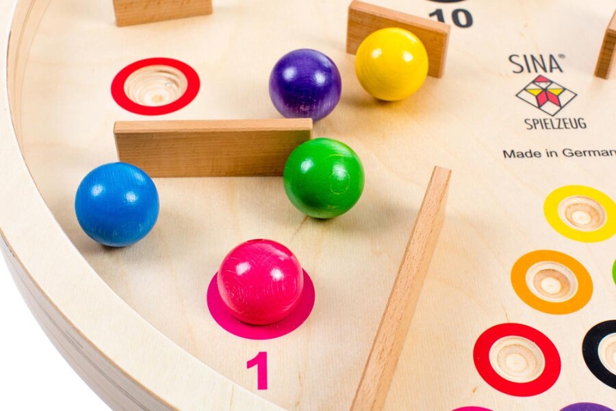 Deze extra grote tafeluitdaging traint concentratie, samenwerking en fijne motoriek. Kantel, draai en stuur de houten ballen naar de juiste doelvakken. Speel met één of met alle ballen tegelijk voor passend niveau. Stevig materiaal maakt het geschikt voor groep en therapie.