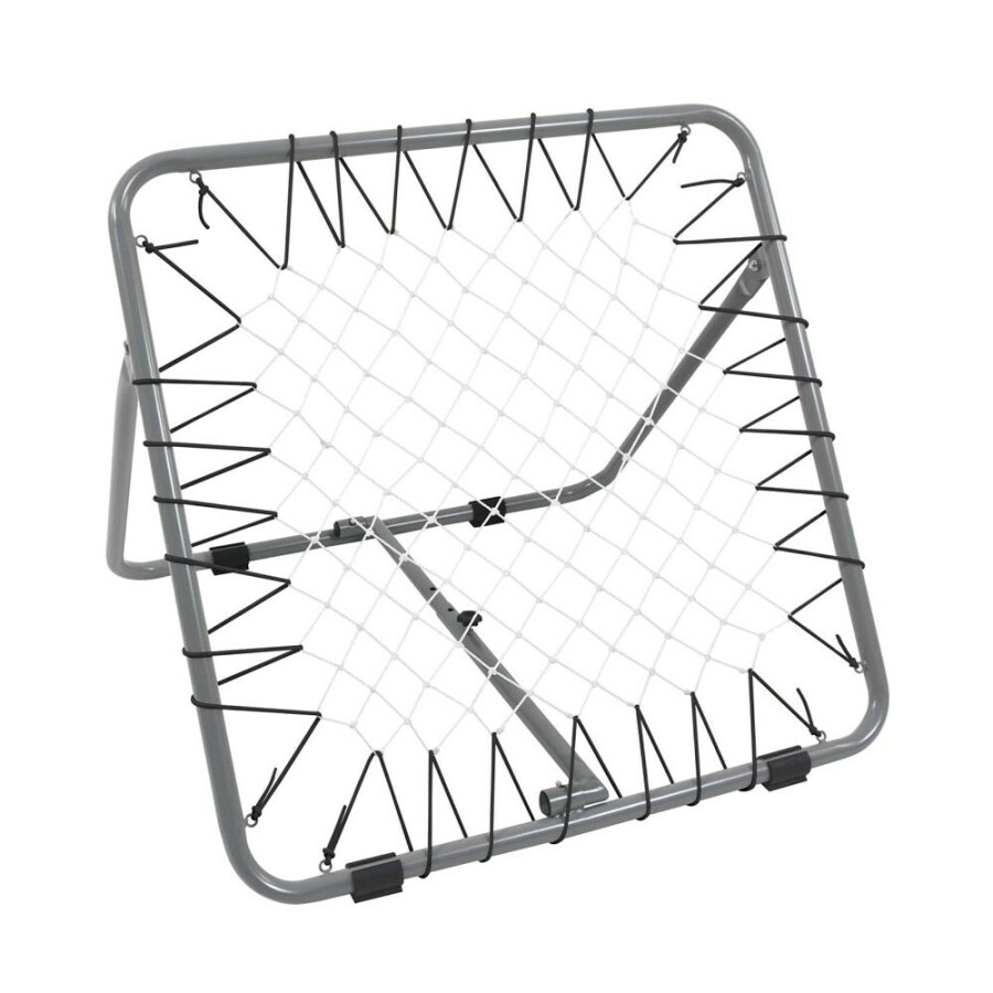 Reageren én mikken in één set: een stevige rebounder met verwisselbaar klittenband-doel. Met net train je gooien en vangen; met het doel tel je punten. De hoek stel je in voor elke groep. Rubberen voetjes geven grip, ook buiten. Alles is zo opgezet en net zo snel weer opgeborgen.