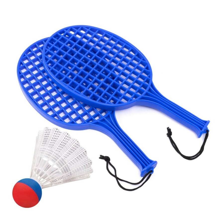 Speel meteen mee op plein of in gymzaal, met grote shuttle die lekker traag vliegt. De robuuste kunststof rackets kunnen tegen een stootje en tegen een buitje. Ophanglussen maken opbergen eenvoudig. Spelenderwijs trainen kinderen coördinatie, kracht en uithoudingsvermogen.