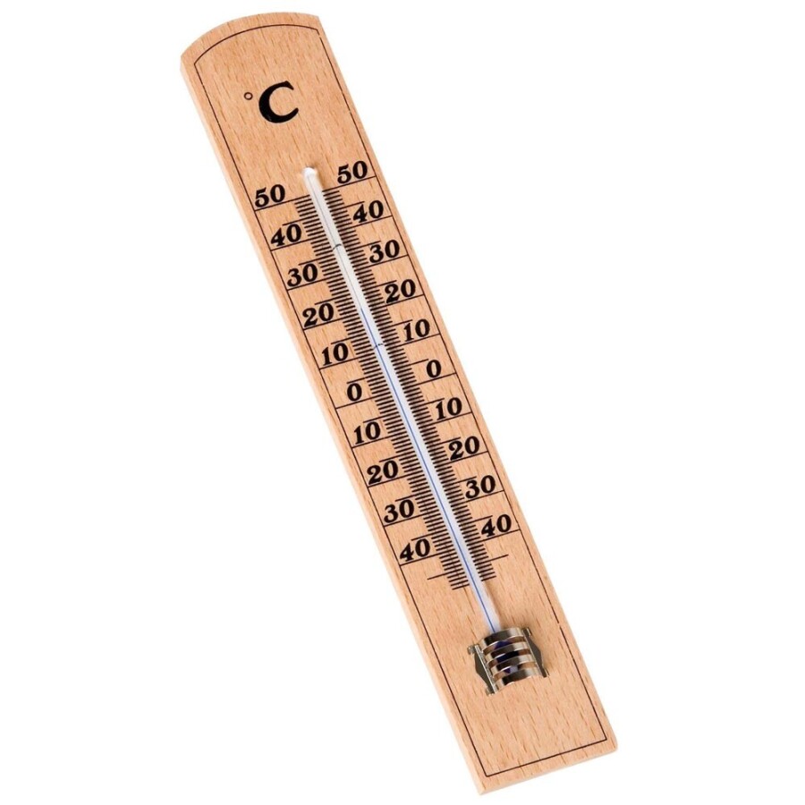 Deze analoge thermometer voor binnen toont de temperatuur zonder kwik. Je leest snel de stand af op een klassieke wijzer. De thermometer heeft een meetbereik van -40°C tot +50°C, dus hij kan breed worden ingezet. De nauwkeurigheid komt door een 2-punts afstelling. De thermometervloeistof is speciaal gekleurd en zit in de haarvaten. De buitenkant is gemaakt van massief beukenhout en heeft een ophangoog. Zo hangt of staat hij netjes in de klas of thuis.