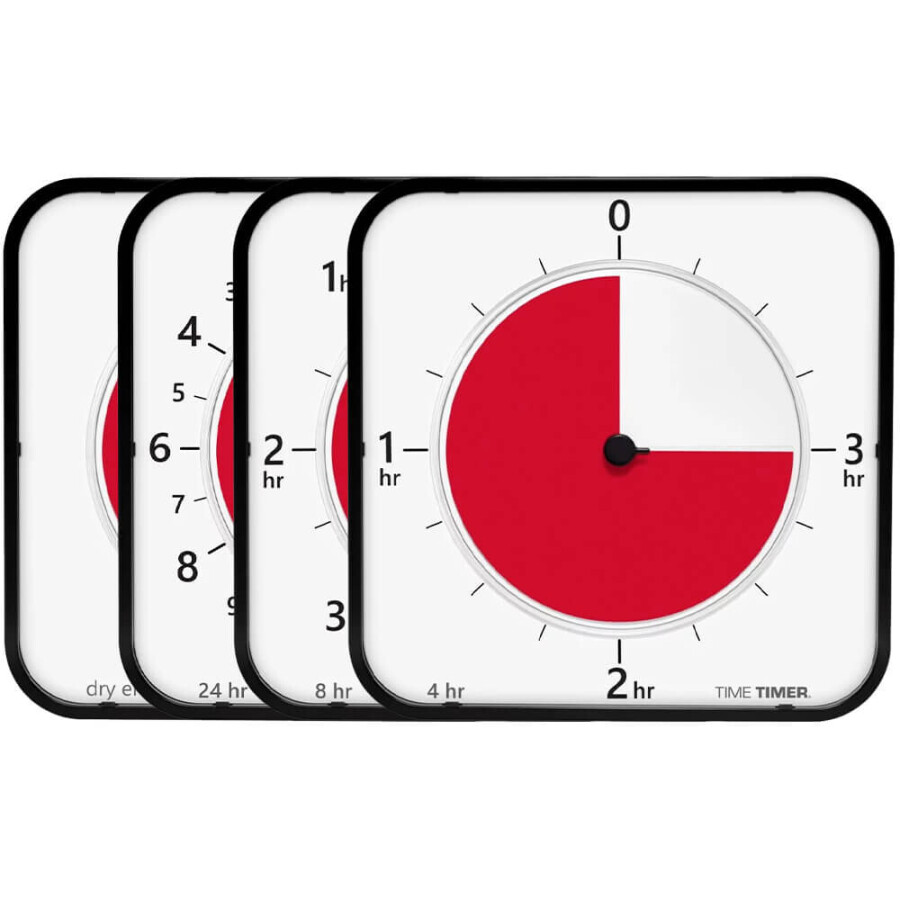 Zo biedt de Time Timer MAX maximale flexibiliteit. Je kunt hem laten aftellen vanaf 5 minuten tot maar liefst 24 uur - of elke tijdsduur daartussenin.