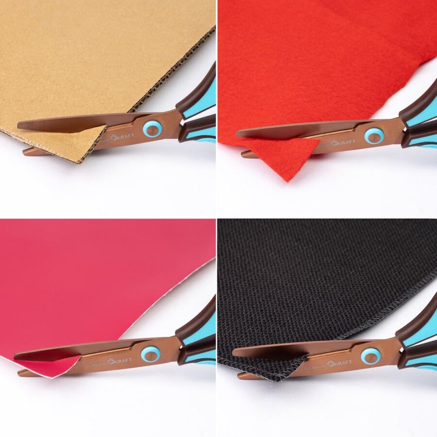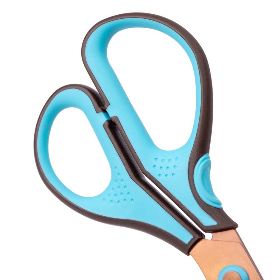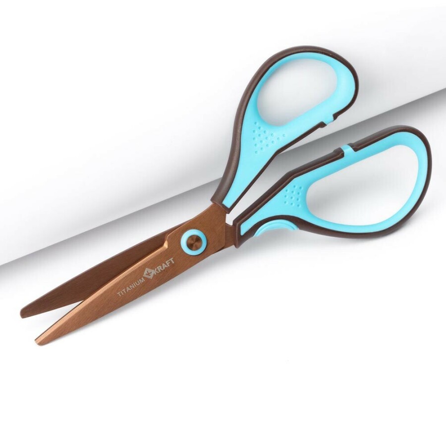 Deze 7 inch schaar heeft bladen met titaniumlaag die scherp en roestvast blijven. De kleine snijhoek knipt soepel door papier, textiel en kunststof. Softgrip handgrepen liggen stabiel in de hand. Geschikt voor links- en rechtshandig gebruik.