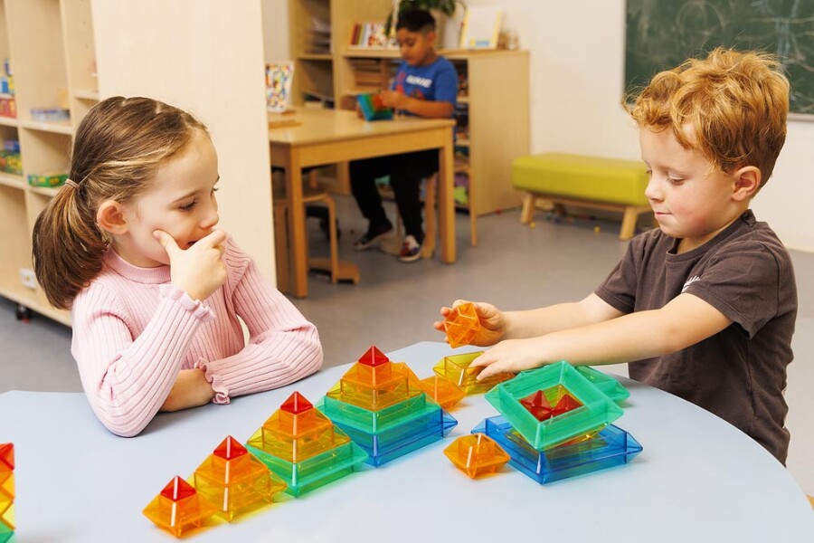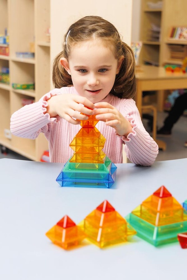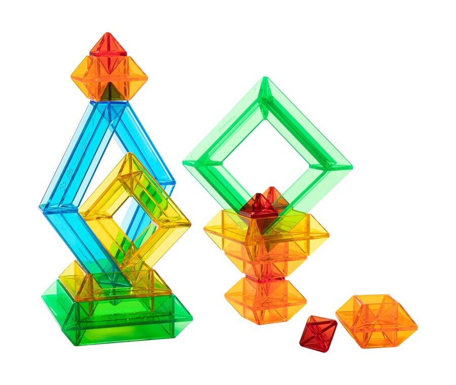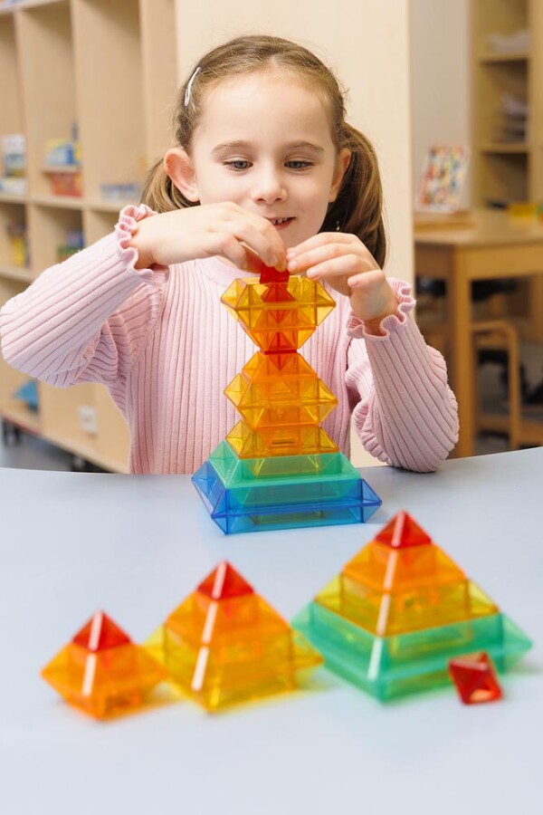 Transparante bouwdelen die in vlak en hoogte gestapeld worden en prachtige kleurmengingen geven. Perfect op een lichttafel, maar ook gewoon op tafel inzetbaar. Stimuleert ruimtelijk inzicht, creativiteit en samenwerken. Geschikt voor vrij spel en gerichte opdrachten in klas of thuis.