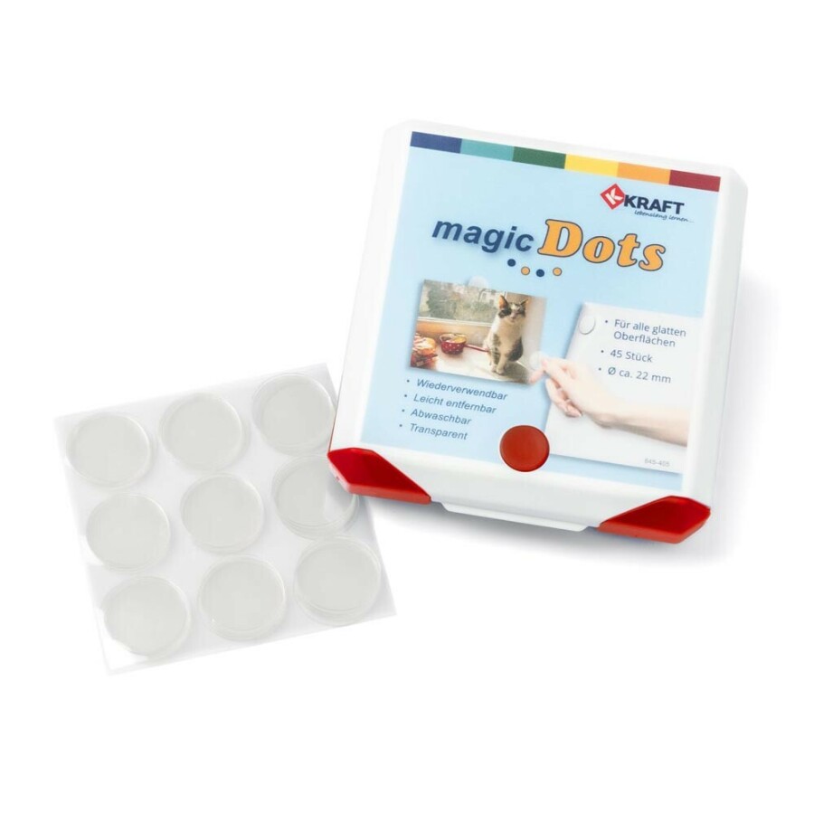 Met deze transparante plakkers bevestig je posters en foto's zonder sporen. Ze zijn herbruikbaar en afwasbaar, dus ideaal voor wisselende presentaties. Werkt op gladde oppervlakken en kan aan voor- of achterkant geplakt worden. Handig opgeborgen in een doosje, klaar voor de volgende activiteit.