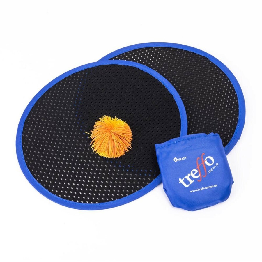Kinderen oefenen gooien en vangen op een speelse, beweeglijke manier. De lichte schijven kaatsen de rubberen bal prettig terug. Speel samen of gebruik een schijf als frisbee. Klik de schijven na het spel in elkaar en berg ze op. Alles past in het tasje en kan zo mee naar buiten.