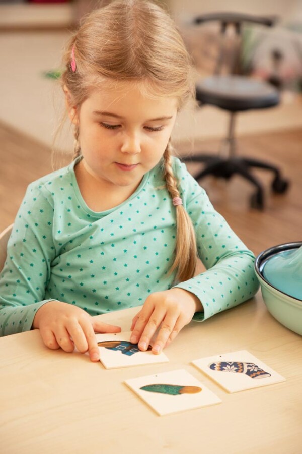 Spelers zoeken telkens drie bij elkaar horende kaartjes rond tien thema’s, zoals huizen of hoofddeksels. Markeringen op de achterkant zorgen voor zelfcontrole. Zo ontstaan vanzelf gesprekken over overeenkomsten en verschillen tussen culturen. Helder beschreven voorbeelden in de handleiding ondersteunen de woordenschat.