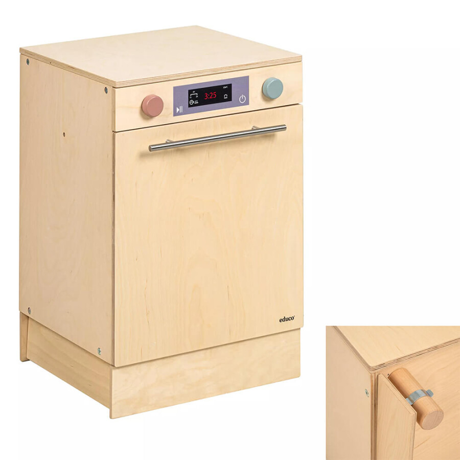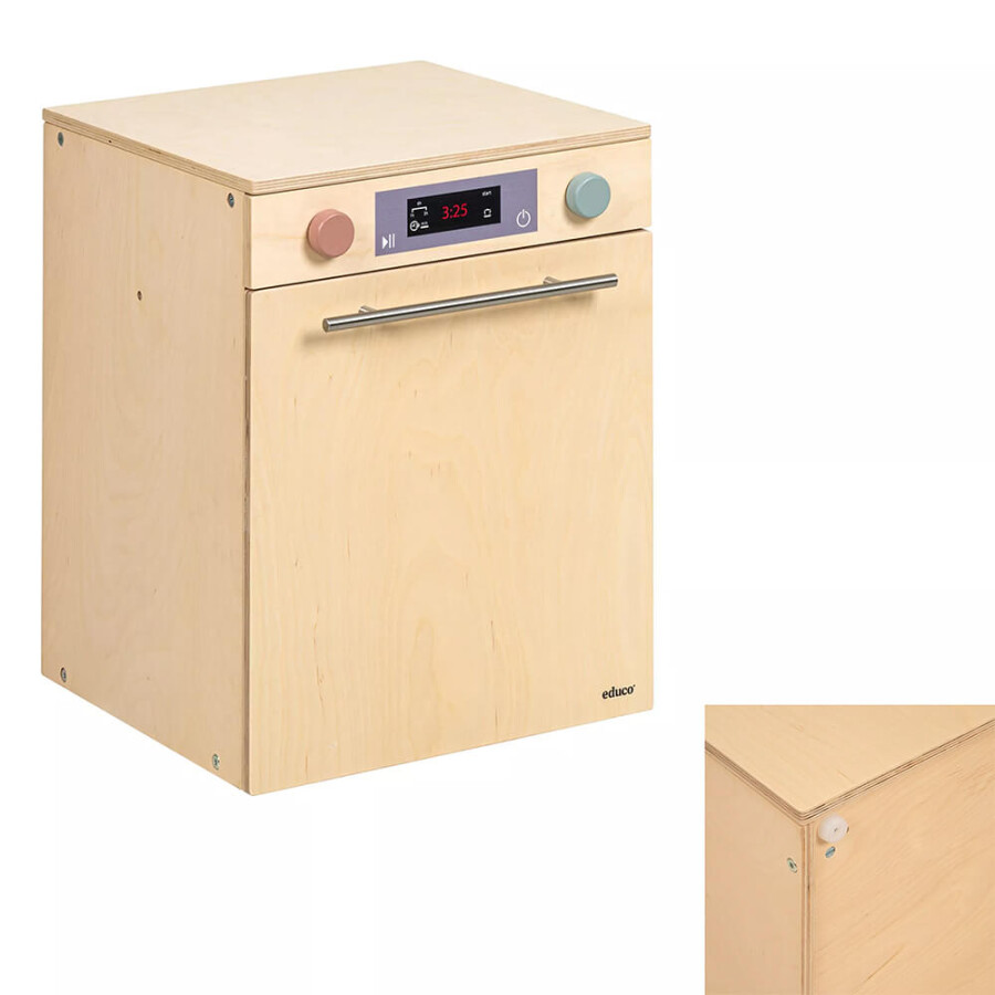 Creëer een herkenbare omgeving voor kinderen met de huishoudelementen van Educo. Door het gebruik van een realistische indeling van de vaatwasser en de ‘echte’ details zoals het display, de tikkende knoppen en het metalen handvat is het meubel heel herkenbaar voor kinderen. Deze vaatwasser kan losstaand worden gebruikt, maar kan ook gecombineerd worden met andere Educo keukenelementen tot een complete speelkeuken.