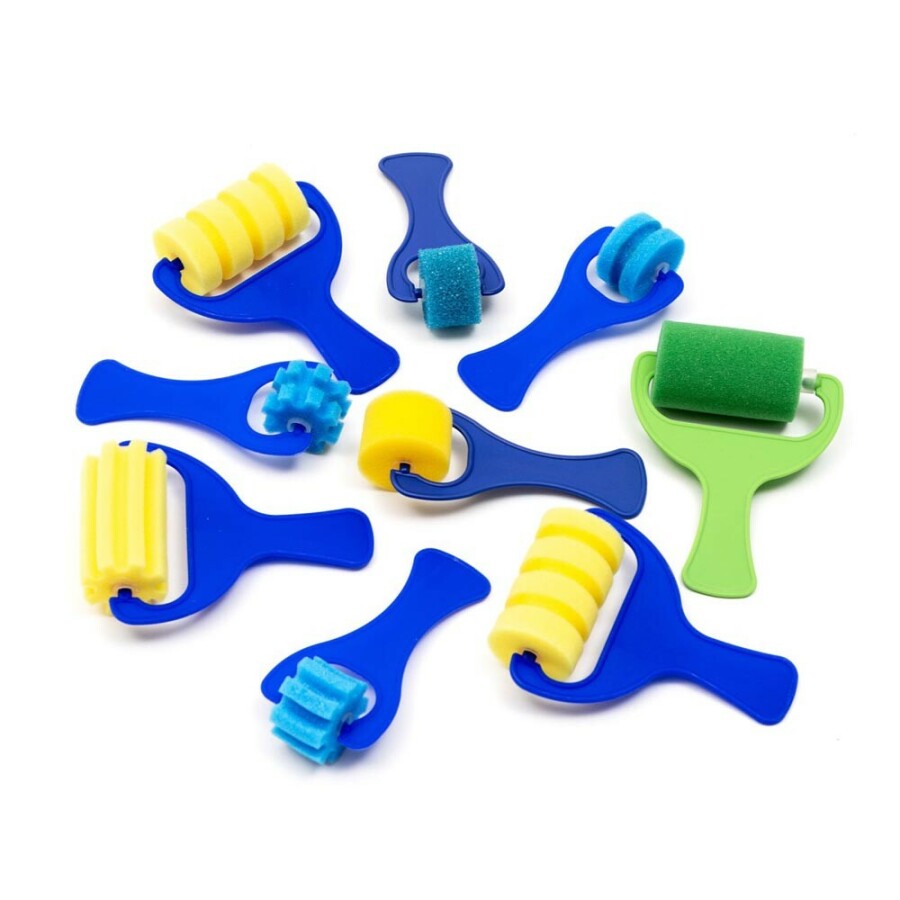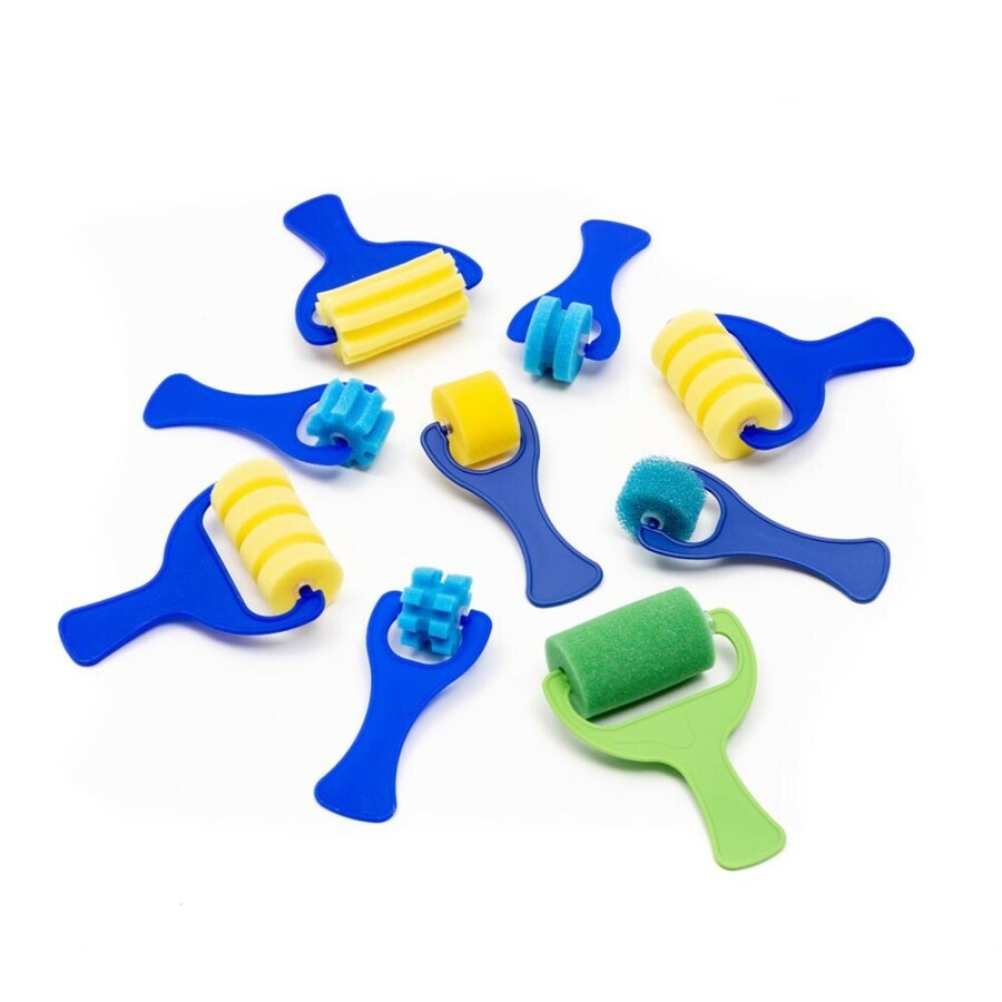 Deze 9 schuimrollers laten kinderen snel patronen en vlakken aanbrengen. De handgrepen liggen stevig in kleine en grote handen. De schuimrollers nemen precies genoeg verf op voor egaal resultaat. De rollen lopen licht en geven een vloeiende afdruk. Na het wassen kunnen ze droog terug in de bewaarzak.