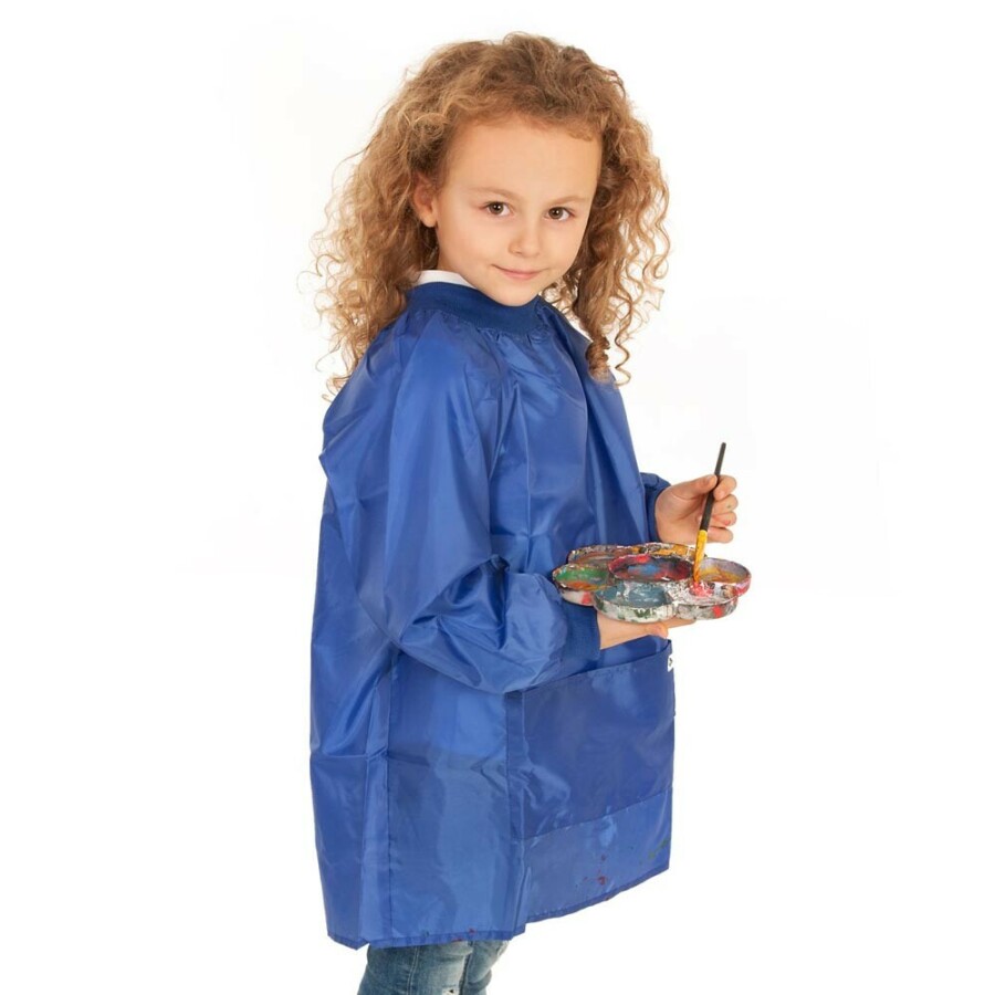 Kleding blijft schoon tijdens knutselen en schilderen met deze fijne kinderschort. Waterafstotend materiaal en zachte boorden zorgen voor draagcomfort. De klittenbandsluiting is snel dicht, ook door kleine handen. De grote buidelzak houdt kwasten en doekjes binnen bereik. Past bij basisschoolleeftijd, met mouwen die netjes aansluiten.