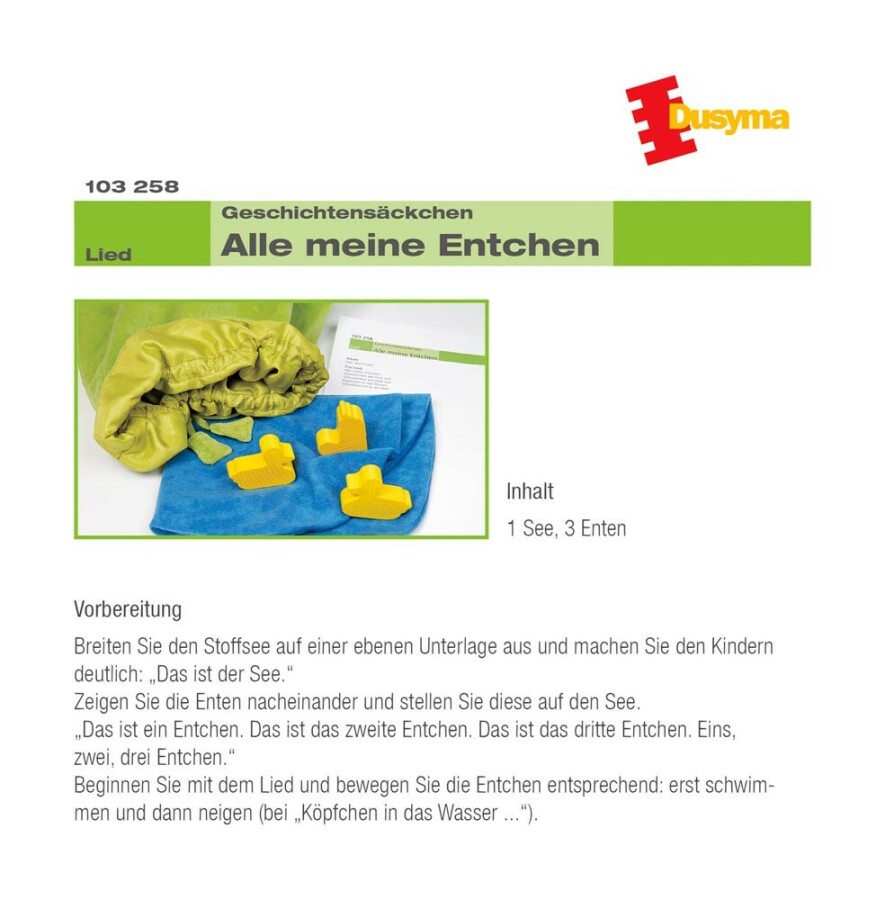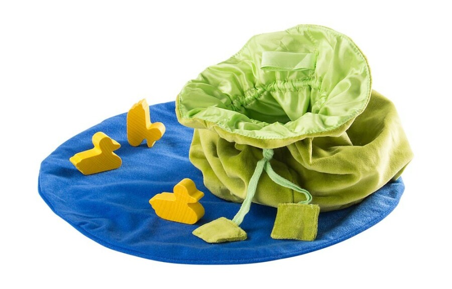 Deze buidel brengt het eendjeslied tot leven met tastbare materialen. Kinderen laten de eenden zwemmen, tellen kuikens en oefenen begrippen als diep en ondiep. Perfect voor taalontwikkeling, ritme en kleutermuziek. Het zachte meer nodigt uit tot rustig spel en herhalen. Gebruik onder begeleiding bij kleine onderdelen. Alles blijft samen in de stevige fluwelen zak.
