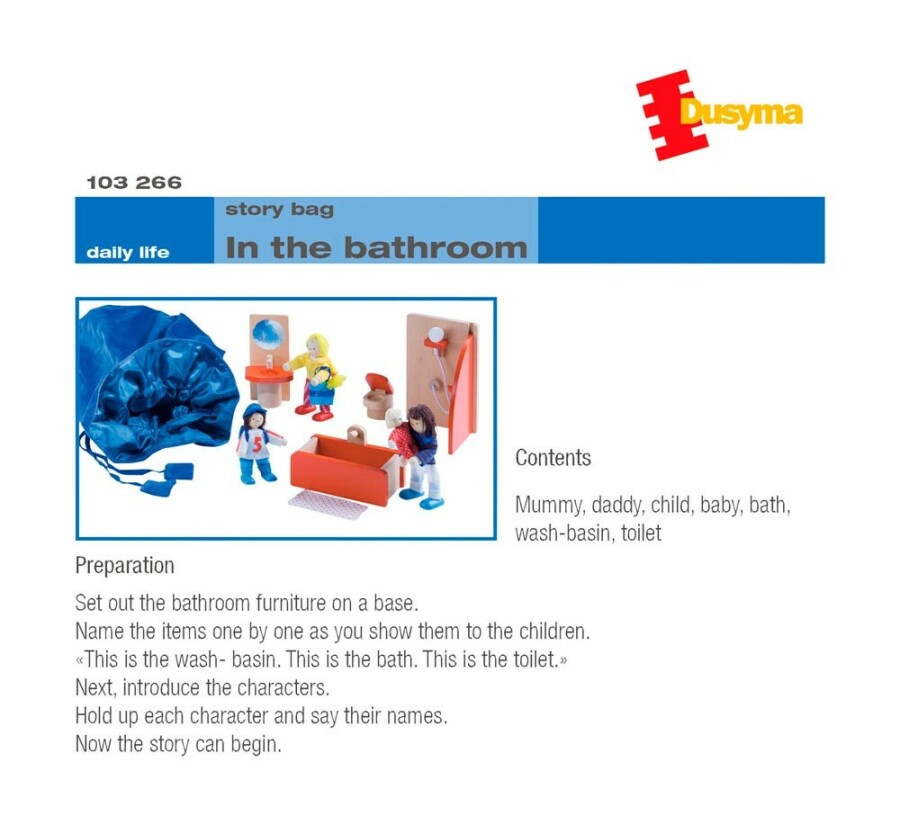 Met deze buidel bespreek je routines rond wassen, toilet en verzorging op een veilige manier. De buigpoppen en houten badkamermeubels nodigen uit tot rollenspel en woordenschat. Kinderen verkennen volgordehandelingen en afspraken in huis. Handig voor sociaal-emotionele thema’s en taal. Begeleiding is gewenst door kleine onderdelen. Alles past samen in de fluwelen zak.