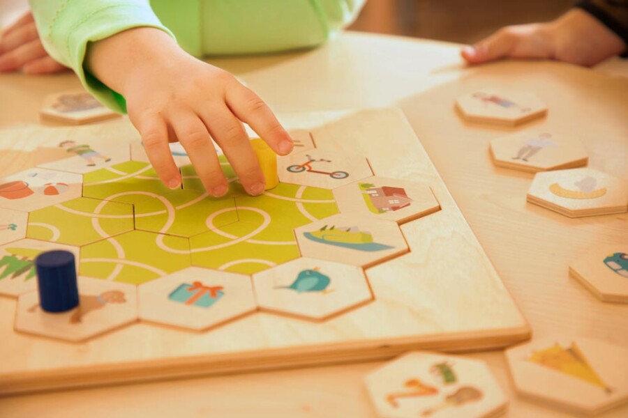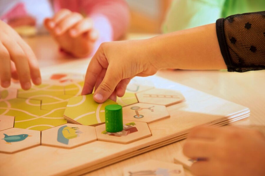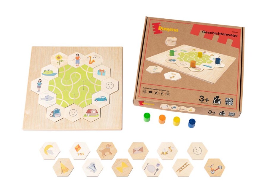 Met dit taalspel bouwen kinderen verhalen door paden te volgen van kaart naar kaart. Ze oefenen vrij vertellen, zinsbouw en woordenschat, met ruimte voor humor en fantasie. Meerdere spelvormen houden iedereen betrokken, ook bij kleine aandachtsspannen. Snel klaarzetten: kaarten in het bord, pion kiezen en rijden maar.