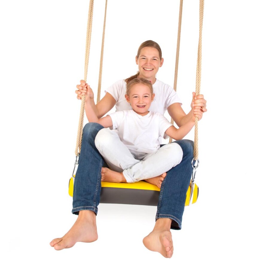 Deze stevige hangschommel geeft kinderen beweging, balans en rust, precies wanneer dat nodig is. Ze kunnen liggen, zitten, knielen of staan en zelfs samen schommelen. Draai in, vaar rondjes en oefen spelenderwijs coördinatie en kracht. De hoes voelt prettig aan, met sterke naden en zachte randen voor extra veiligheid. Bevestigen gaat eenvoudig met de meegeleverde karabiners en touwen.