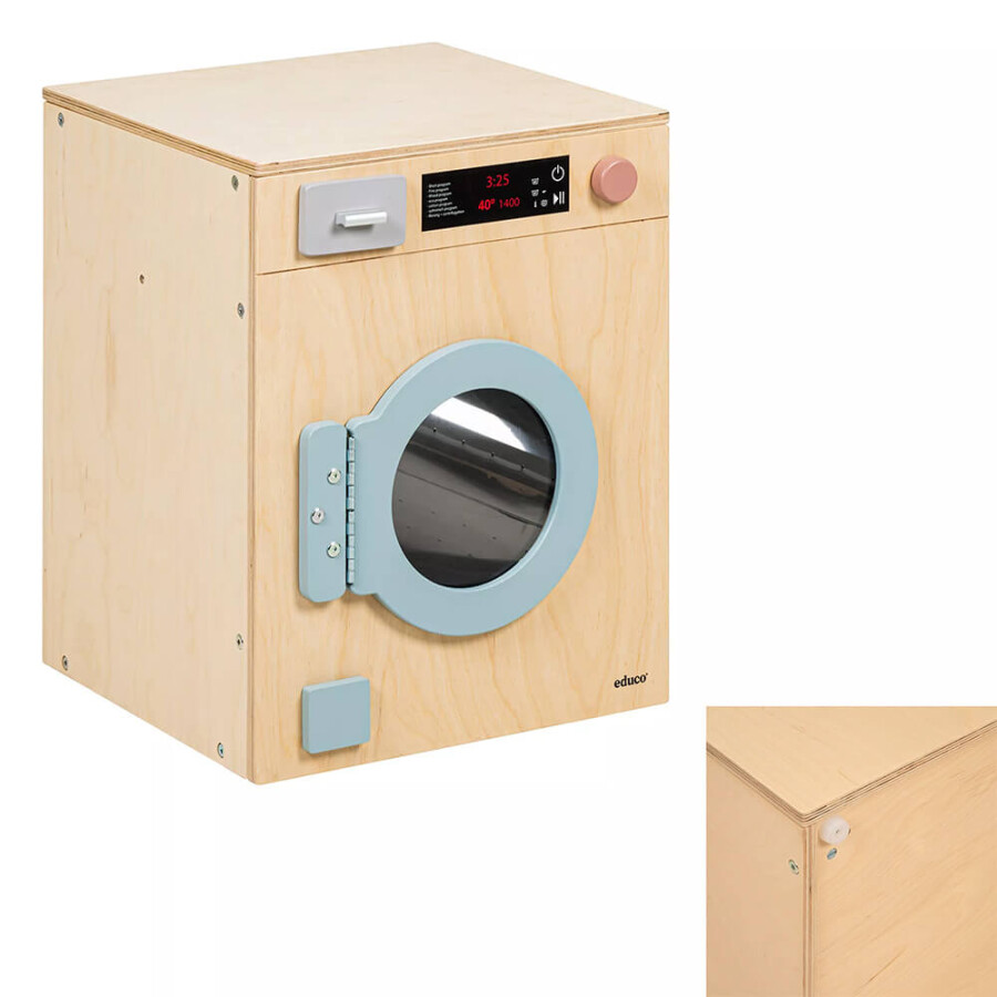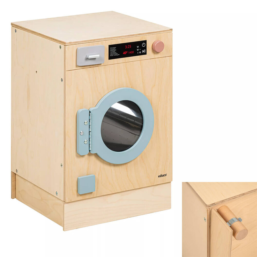 Creëer een herkenbare omgeving voor kinderen met de huishoudelementen van Educo. Door het gebruik van een realistische details, zoals het display en de metalen trommel is de wasmachine heel herkenbaar voor kinderen. Deze speelgoed wasmachine kan losstaand worden gebruikt, maar kan ook gecombineerd worden met andere Educo keukenelementen tot een complete speelkeuken.