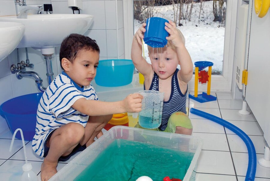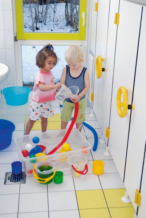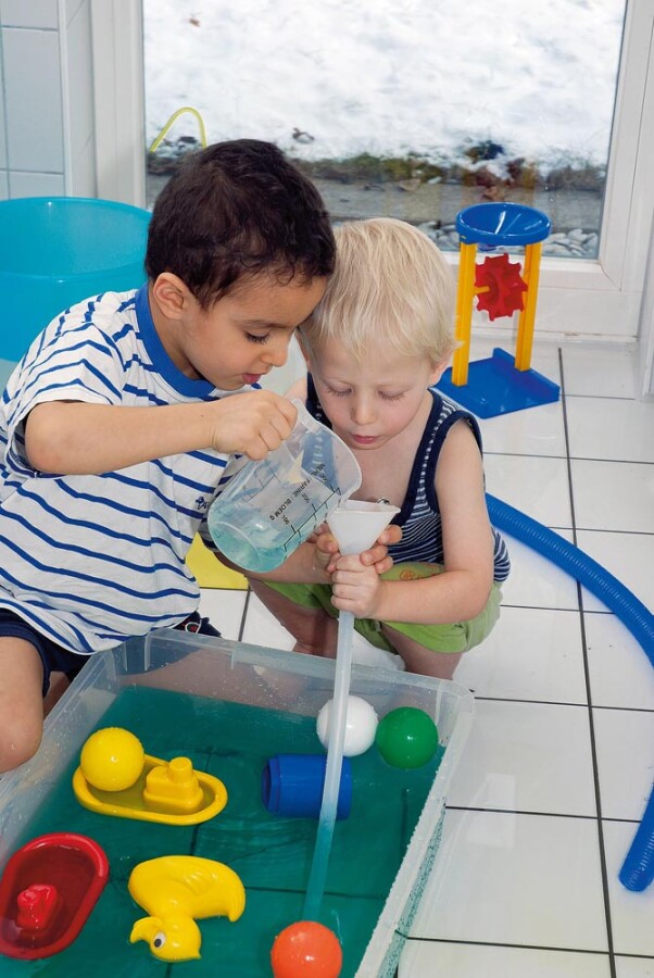 Speciaal voor peuters: materiaal om veilig met water te spelen en te experimenteren. Vul de meegeleverde bakken en ontdek drijven, zinken en stromen. Kinderen scheppen, gieten en knijpen met passend gereedschap. Zo groeien woordenschat en natuurkundige inzichten spelenderwijs. Alles netjes op te bergen in de stevige boxen met deksel.