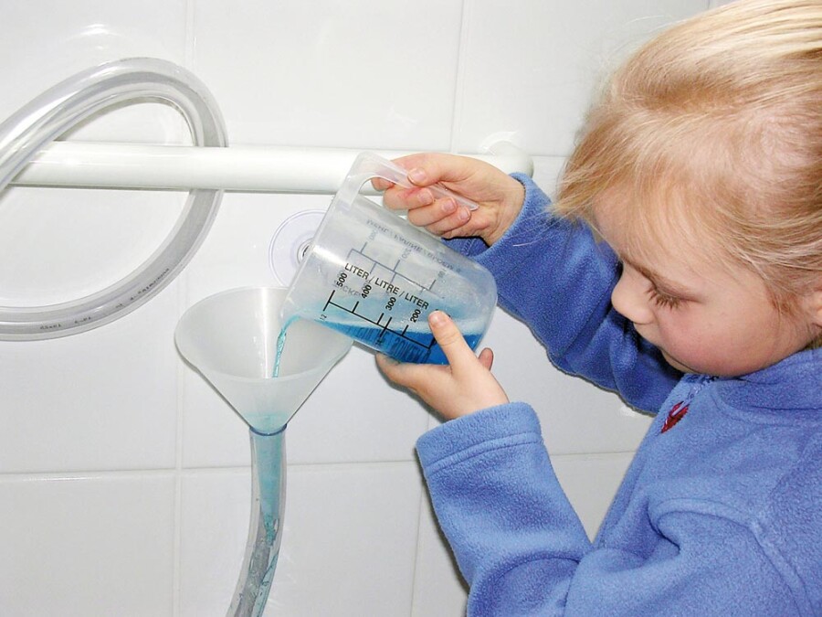 Deze uitgebreide waterwerkplaats nodigt uit tot onderzoeken, bouwen en samenwerken. Kinderen ervaren stroming, druk en volume met slangen en koppelingen. Pompen met spuiten en knijpflessen vraagt precisie en kracht. Meet, giet en vergelijk met maatbekers en trechters. De stevige bakken dienen als waterbak én opbergbox. Inclusief ideeën voor veilige proefjes en gesprekken.