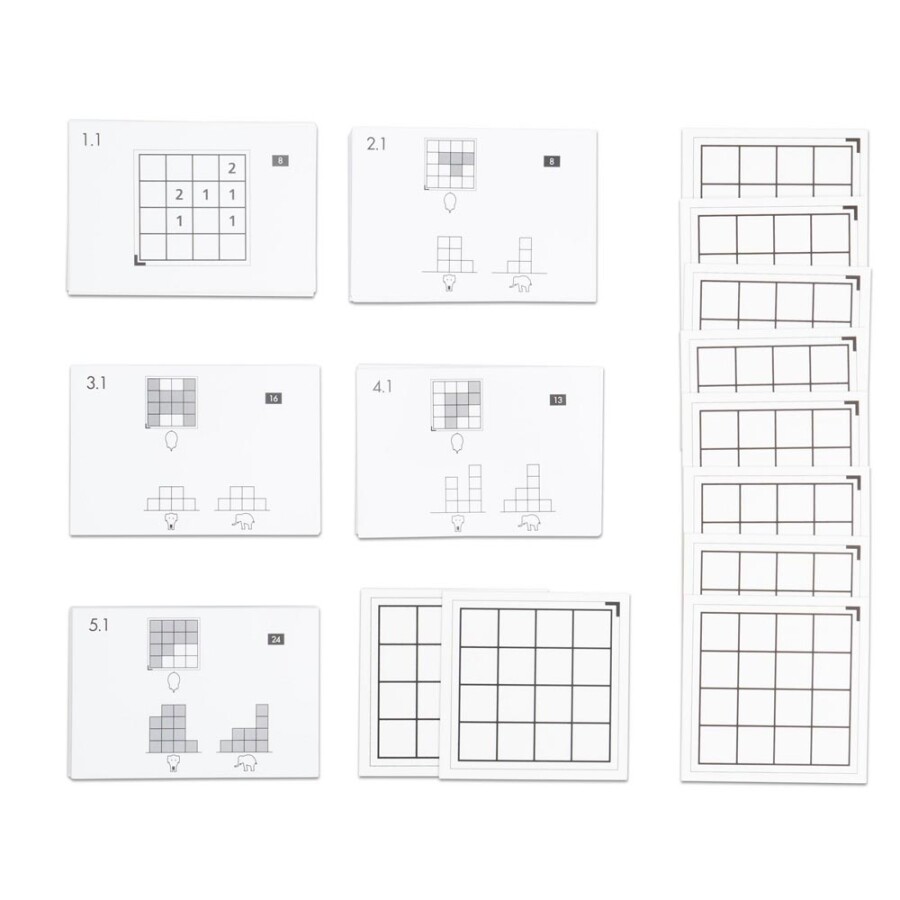 - Bevat 10 werkkaarten en 2 blanco kaarten voor eigen ontwerpen