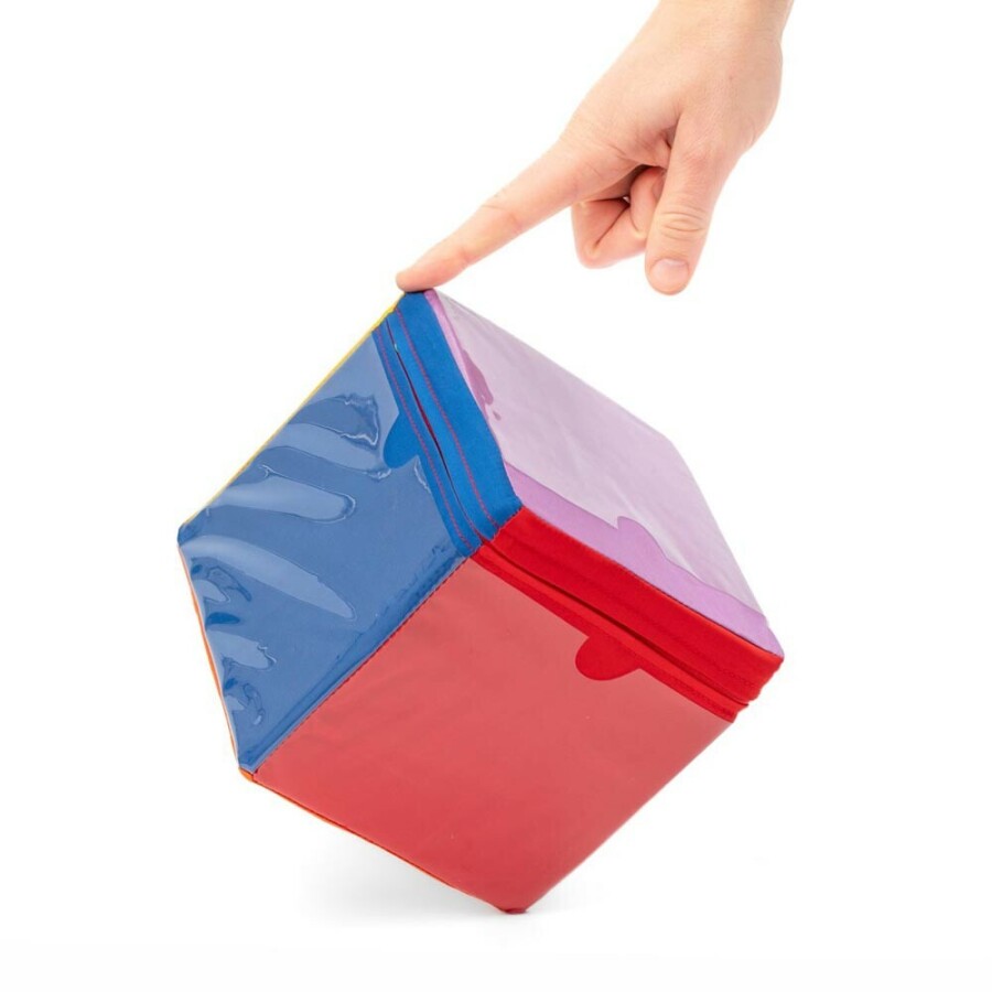 Met deze zachte dobbelsteen breng je meteen vaart in kring- en beweegspelletjes. In elke zijde zit een transparant insteekhoesje voor eigen kaartjes of opdrachten. Laat kinderen sprongen, letters, kleuren of sommen gooien en varieer eindeloos door te wisselen. De lichte schuimkern rolt prettig en de stevige hoes houdt de kaartjes strak op hun plek.