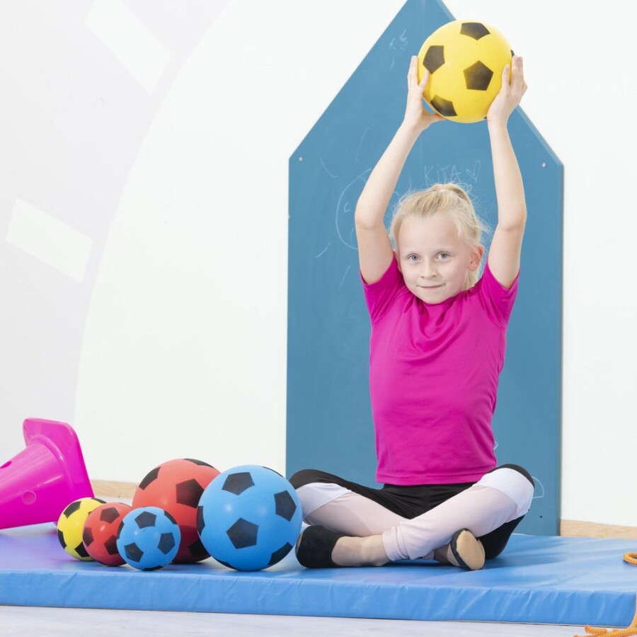 De zachte voetballen set van 20 cm is perfect voor allerlei leuke en veilige balspellen op school, in de kinderopvang of in de gymles. Deze set bestaat uit drie lichte, volledig schuimen ballen in de kleuren geel, blauw en rood. Dankzij hun zachte materiaal zijn ze ideaal voor beginners die hun eerste stappen zetten in balsporten. Of je nu een potje trefbal speelt of een ander spel bedenkt, deze ballen zorgen voor veel beweging en plezier zonder zorgen over blessures.