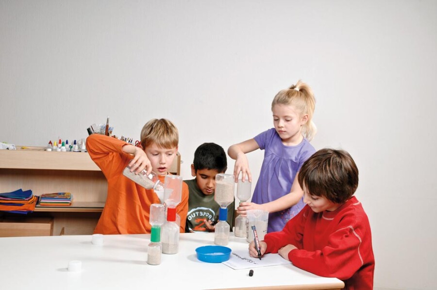 Kinderen bouwen eenvoudig hun eigen zandlopers en vergelijken zo tijd, stroom en hoeveelheid. Het materiaal nodigt uit tot schenken, schatten, meten en bijstellen. Kijken naar de dalende zandstroom werkt rustgevend en focusserend. Met de handleiding start je direct met duidelijke proefjes voor groep of thuis.