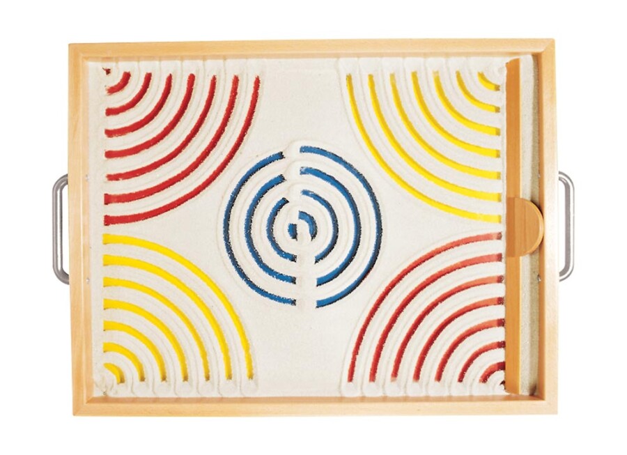 - Inhoud: 1 zandwanne met handgrepen, veiligheidsglas bodem, sandschraper, 2 harkjes, ca. 1 kg fijn kwartszand