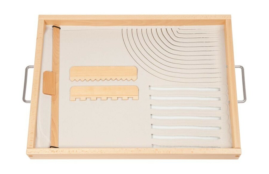 Perfect voor kleuters en leerlingen: een compacte zandtafel die je makkelijk in de klas of thuis gebruikt. Hij heeft een stevige bak met draaggrepen en een bodem van veiligheidsglas. Afmetingen: 65 cm lang, 50 cm breed en 5 cm hoog. Het pakket bevat ongeveer 1 kg fijn kwartszand, twee patroonharken en een sandschraper om de oppervlakte glad te maken. Daarbij zit een Engelstalig lesboek met speelse oefeningen, achtergrondinformatie en praktische tips. De voorbeelden combineren elementen uit Montessori en Waldorf en laten zich goed inzetten bij speltherapie, remediërend onderwijs en creatieve lessen. Zo kun je kinderen gericht laten oefenen met vormen, schrijfoefeningen en vrij spel in het zand.