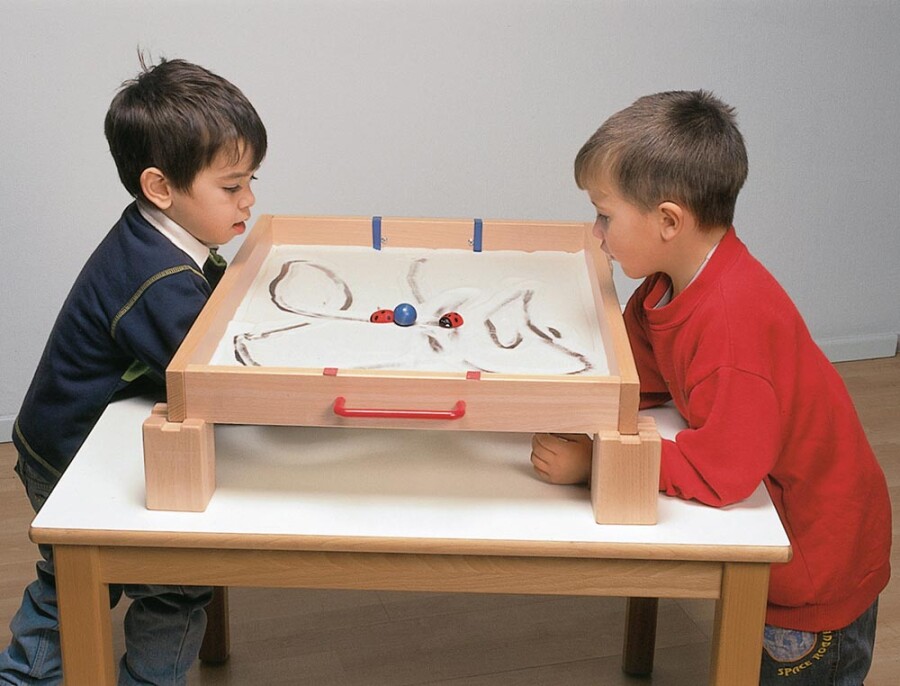 Deze accessoireset maakt de grote zandbaktafel meteen rijk aan mogelijkheden. Vegen, strooien, rollen en magnetisch sturen leveren prachtige sporen en rust. Fijn voor focusmomenten en creatieve opdrachten.