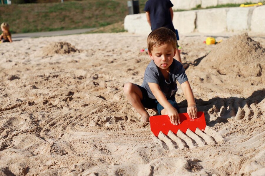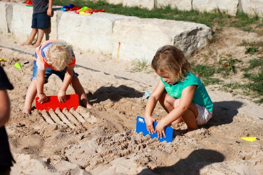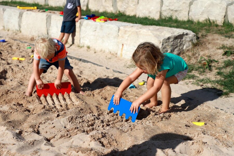 Met deze grote zandkammen maak je in no time duidelijke patronen in zandtafel of zandbak. Ze prikkelen fantasie, taal en fijne motoriek. Twee kammen maken vloeiende lijnen, twee zorgen voor speelse kartels. Fijn voor buiten en in de klas.