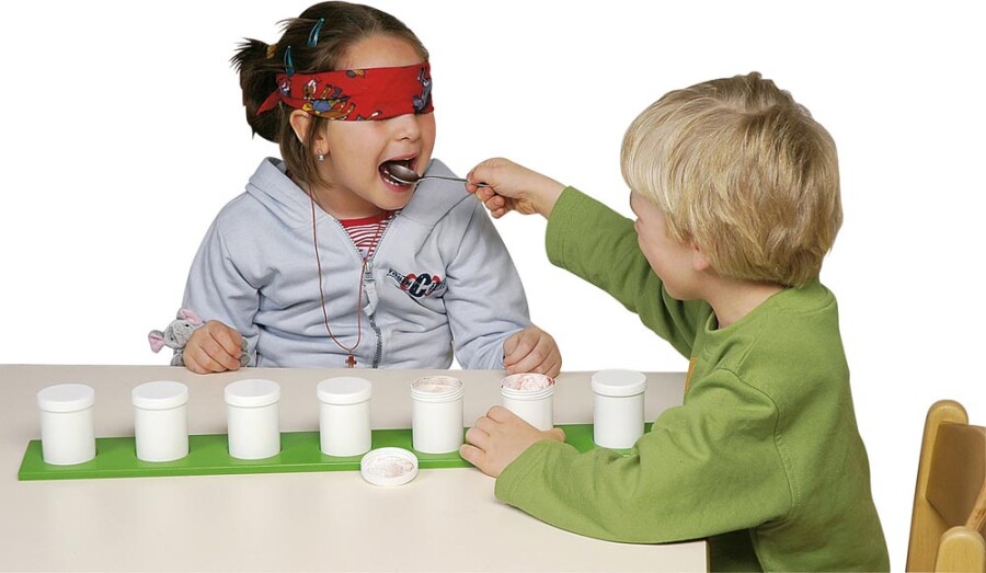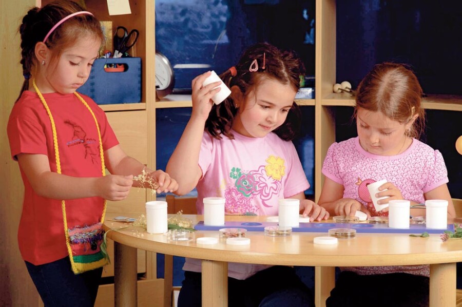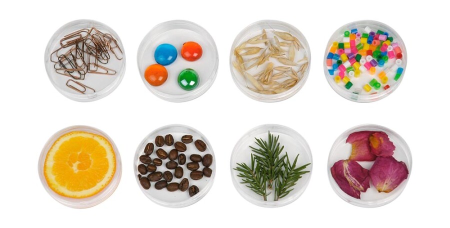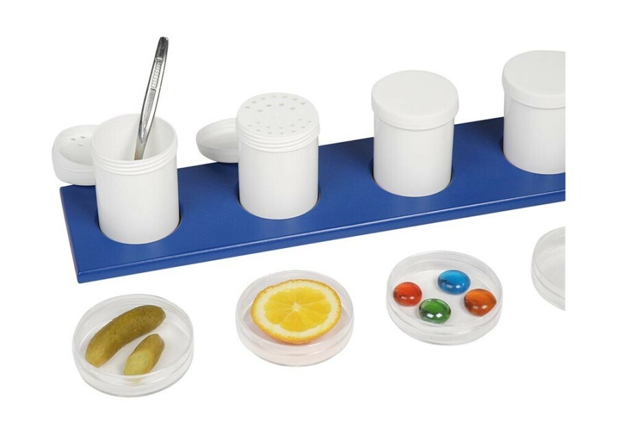 Stimuleer ruiken, proeven en luisteren met een overzichtelijke set voor zinvol spel. Vul de kleine doorzichtige potjes met hetzelfde als de grotere, zodat kinderen zien wat ze ervaren. Tijdens het sorteren koppelen ze geur, smaak of geluid aan het juiste voorbeeld. Ideaal voor kring, thematafel en taalontwikkeling.